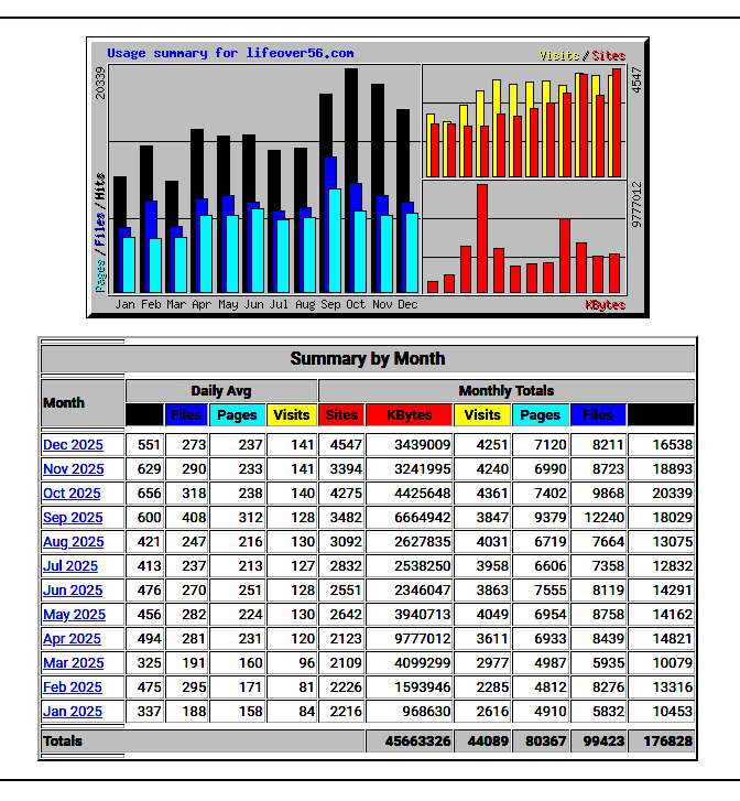For 12 MONTHS 176,828 HITS & 780,367 Pages in 12 Months.