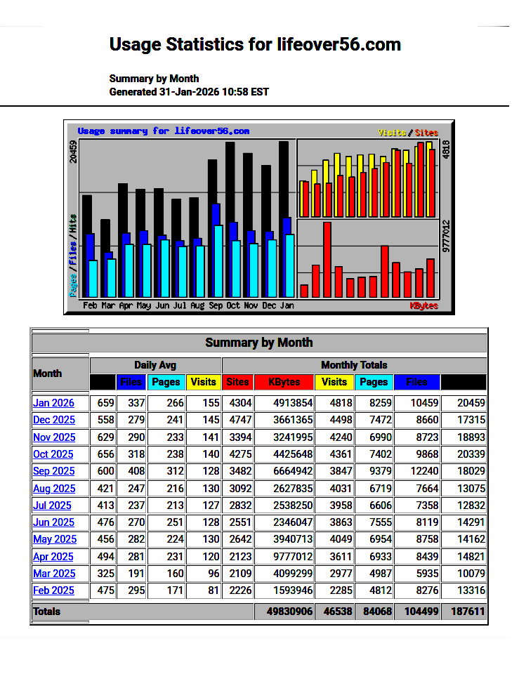Life Over 56 Year's Stats as of January 31, 2026