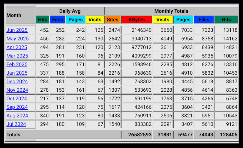 For 12 MONTHS 158,293 HITS & 75,426 Pages in 12 Months.