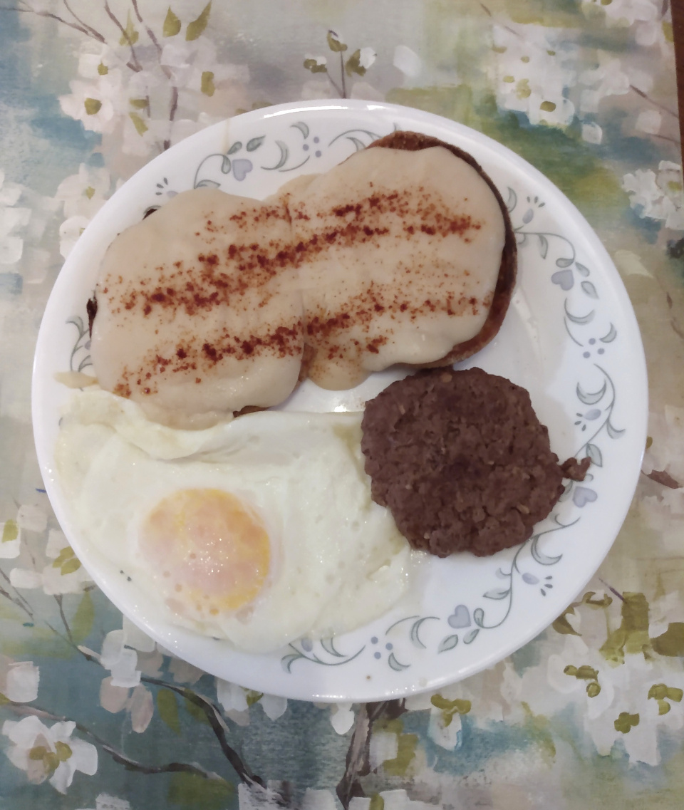 HAMBURGER, WHOLE WHEAT ENGLISH MUFFIN, EGG & GRAVY