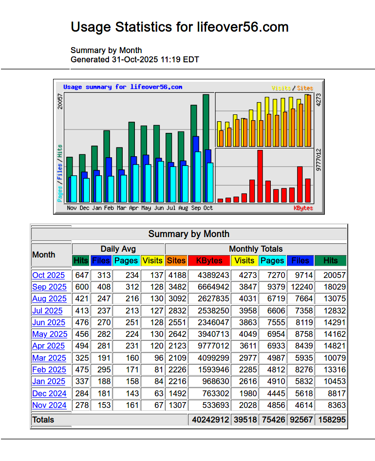 Life Over 56 Year's Stats as of October 31, 2025