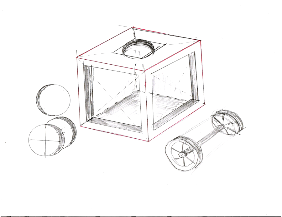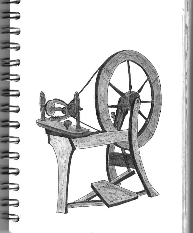 PENCIL, PEN & INK SPINNING WHEEL