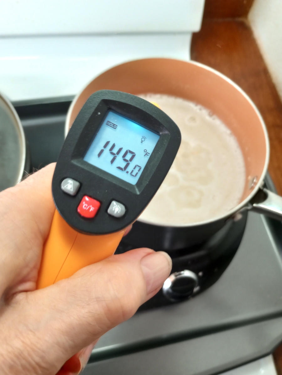 3. Turn the burner on until the water is about 150℉(65.5℃) as shown
